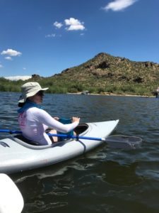 Kayak. Yes, we live in a desert but we also live in a place where the government has dammed all our natural waterways so we have lakes! My personal favorite is Butcher Jones Recreation Area at Saguaro Lake. The parking is decent and there’s a nice little beach to launch from. For this workout if you get hot, just hop in the water then get back to paddling.